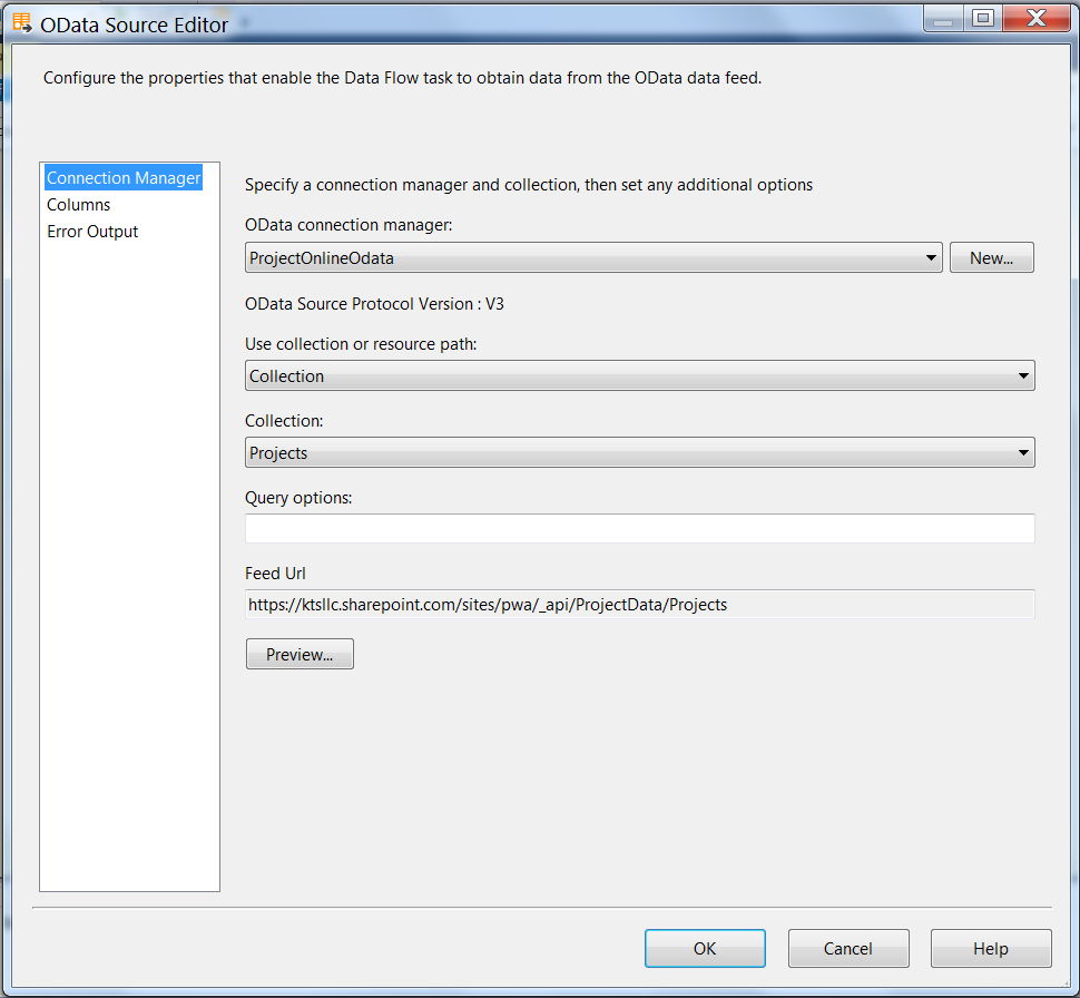 Project management is important to any release. There are several quality tools out there to assist with project management and workflow, but a lot of organizations use Microsoft Project due to its legacy and the depth of its features. What if you want to get your data out of Project Online and into your existing BI environment for integrated reporting on things like costs, risks, issues, and completion status? Microsoft has tight integrations throughout its technology stack, so the easiest approach would be through Power BI or Excel. Your organization may already have a BI solution in place, so reverting back to decentralized Excel-based reporting is not ideal. Additionally, you may not have the capacity, budget, or desire to introduce Power BI as a replacement for your existing solution. So, how can you bring data from Project Online into your existing reporting environment, such as Qlik or Tableau? In this blog post, I will show you a way to do that, along with a pesky bug that may accompany your implementation, and how to work through it. Setup For the setup, we will use a fictional company, KTS LLC, with SharePoint and Project Online site collections located at https://ktsllc.sharepoint.com/. In Project Online, I’ve created a project, ‘testproject’, and made some tasks: Make sure that the user (login) that you will use to connect will need the appropriate permissions to access the OData feed as outlined in the service reference. Connect to Project Online using OData Source On the surface, connecting to Project Online via SSIS is straightforward: Simply create an OData connection manager combined with an OData Source and then write to a database or flat file. However, this seemingly easy solution can have its share of problems, as experienced by colleagues and me while working on a project for one of our clients. The Bug Open up SQL Server Data Tools and create a new OData connection: Enter in the credentials and service document location. For Project Online, the service document location format is https://yoursitecollection.sharepoint.com/sites/pwa/_api/ProjectData. Test the connection, and it succeeds: Then create an OData Source within a data flow task using the same connection manager: The collection list is visible in the dropdown menu: However, when clicking ‘Preview’ or attempting to view the column list, Visual Studio locks up completely and you see the following message: For me, the problem was very repetitive and frustrating. Even after waiting an hour, VS would not recover, and I would have to manually kill the task in the task manager and receive the prompt that VS is not responding. Thankfully, after some time on the phone with a very helpful (and patient) Microsoft SQL Server Support engineer, it was suggested that I try the fix outlined here. Writing to a Flat File from an OData Source After the fix, fire up SSDT, open up the OData Source, pick your collection (we will stick with the tasks example), and click ‘Preview’: Success! Now we can choose our columns: Finish up the data flow task with a flat file destination: Execute the data flow task within the control flow, and check the output: In this simple example, we wrote the output to a flat file, but we could have used a database destination instead; choose the preferred method that would most easily integrate with your existing BI environment. Conclusion With assistance from Microsoft tech support, we were able to get our client’s data out of Project Online and into Qlik for enhanced, centralized project management reporting. It is no secret among IT professionals that, when encountering bumps in the road with an implementation, we rely on the help of strangers on the internet through Stack Overflow, product forums, or individual blog posts. If you found this post useful, I would highly encourage you to ‘pay it forward’ and share your fix online… You never know who it may help! Talk With a Data Analytics Expert Key Takeaways Project management within Microsoft Project can be integrated into your BI tools such as Qlik or Tableau. Using Power BI is the simplest method for integration, but organizations may prefer not to switch from their existing BI tools. Connecting to Project Online via an OData Source in SSIS seems simple but can encounter technical issues. There is a known bug where Visual Studio may freeze during data connections with Project Online. A suggested fix from Microsoft Support can resolve the issue, enabling successful data integration. Once resolved, data from Project Online can be written to a flat file or database to suit reporting needs. Being part of online communities can be beneficial when troubleshooting such implementation challenges.